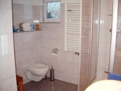 Dusche/WC ausgestattet mit: Hand- und Duschtüchern, Handseife, Duschgel.